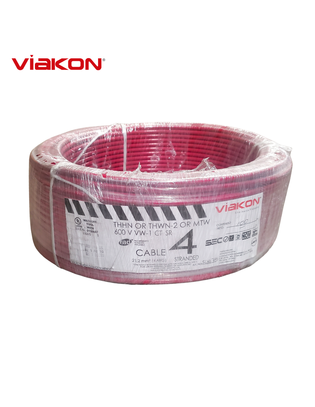 Cable Electrico Cobre THHN 4 AWG Rojo 100MT