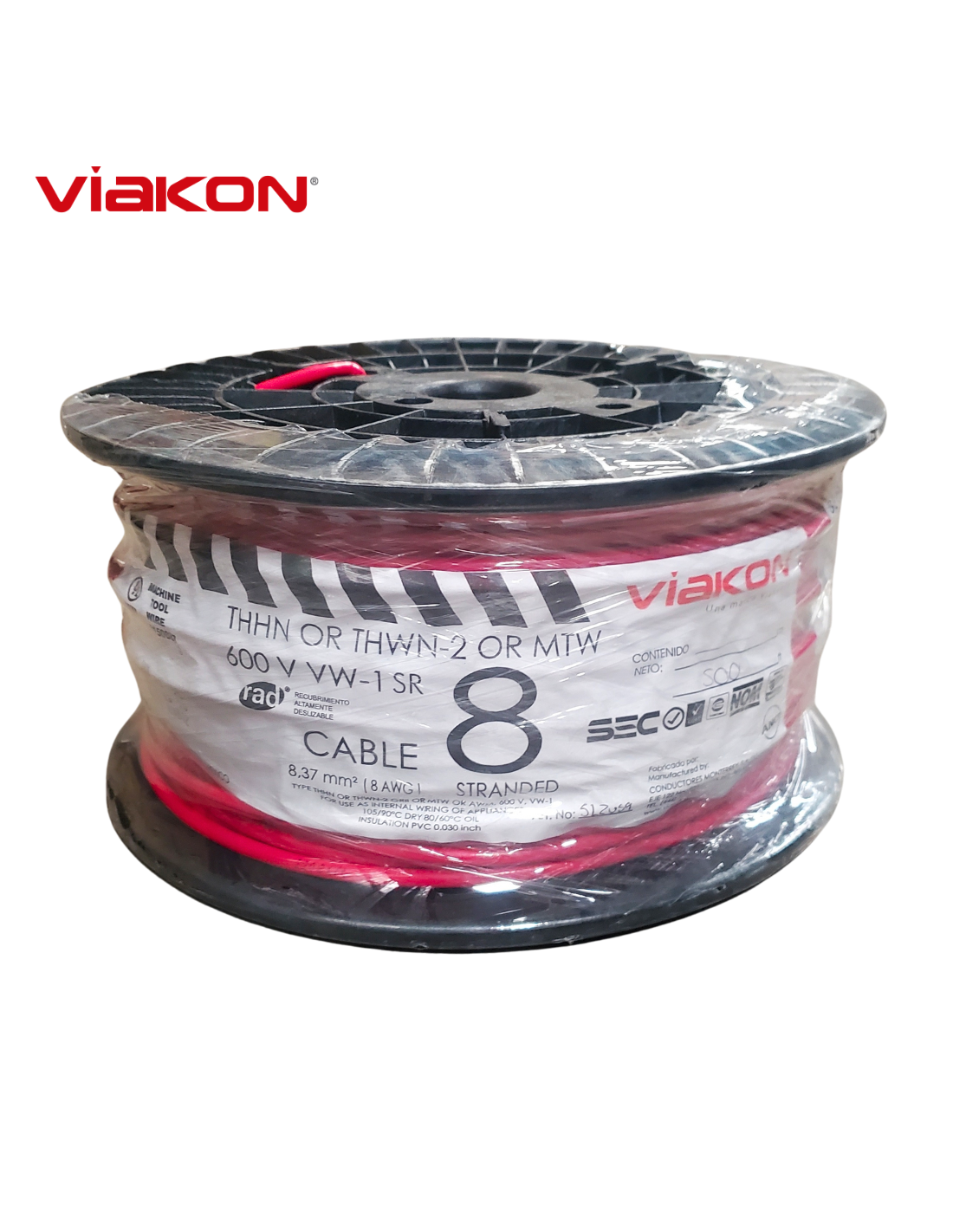 Cable de Cobre THHN #8 AWG Rojo Rollo 500ft – Alta Conductividad y Durabilidad