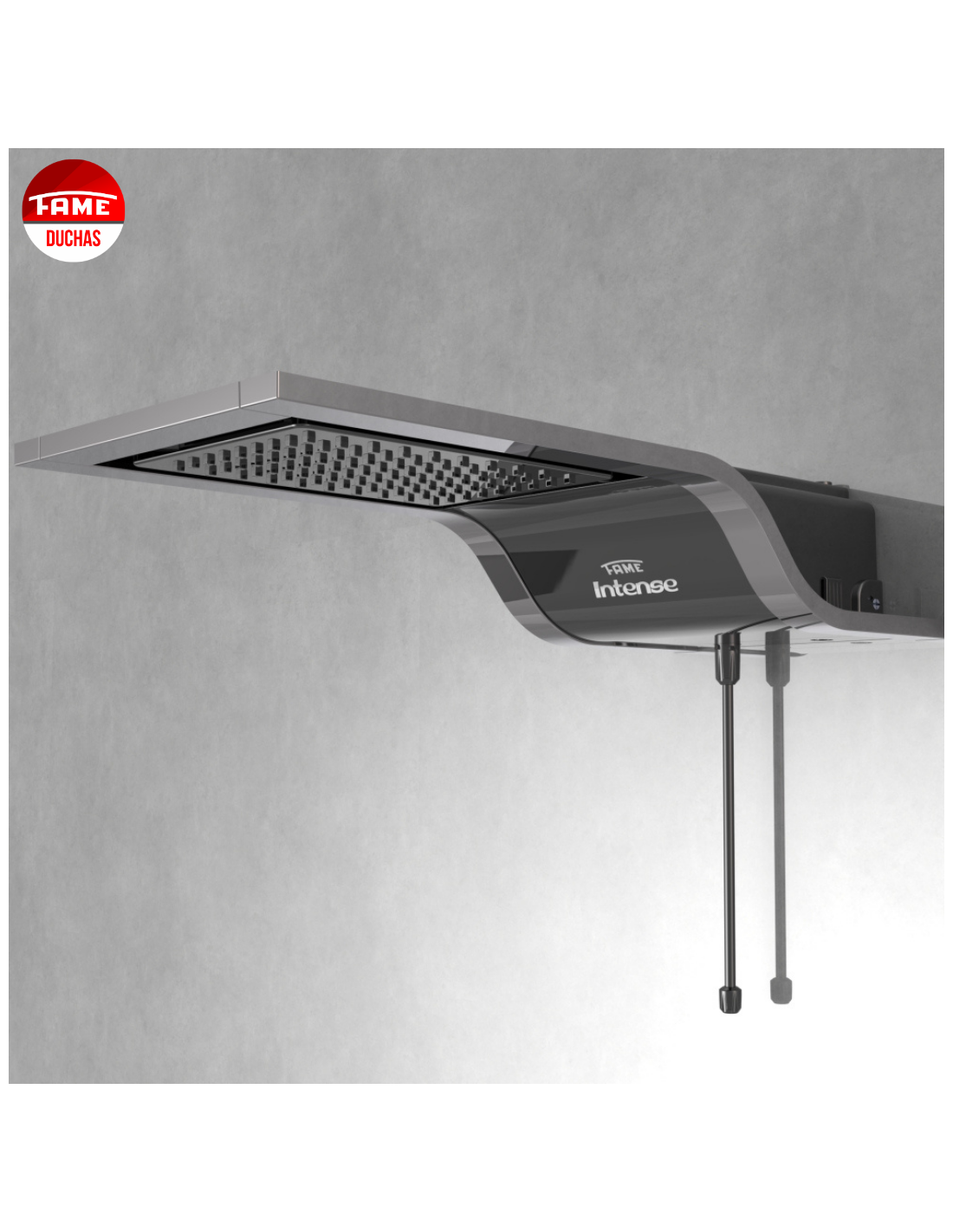 DUCHA INTENSE NEGRA 110V 4800W de la marca Fame es una ducha eléctrica de alta potencia diseñada para proporcionar un baño confortable con abundante agua caliente. Aquí tienes una descripción detallada basada en la información encontrada: