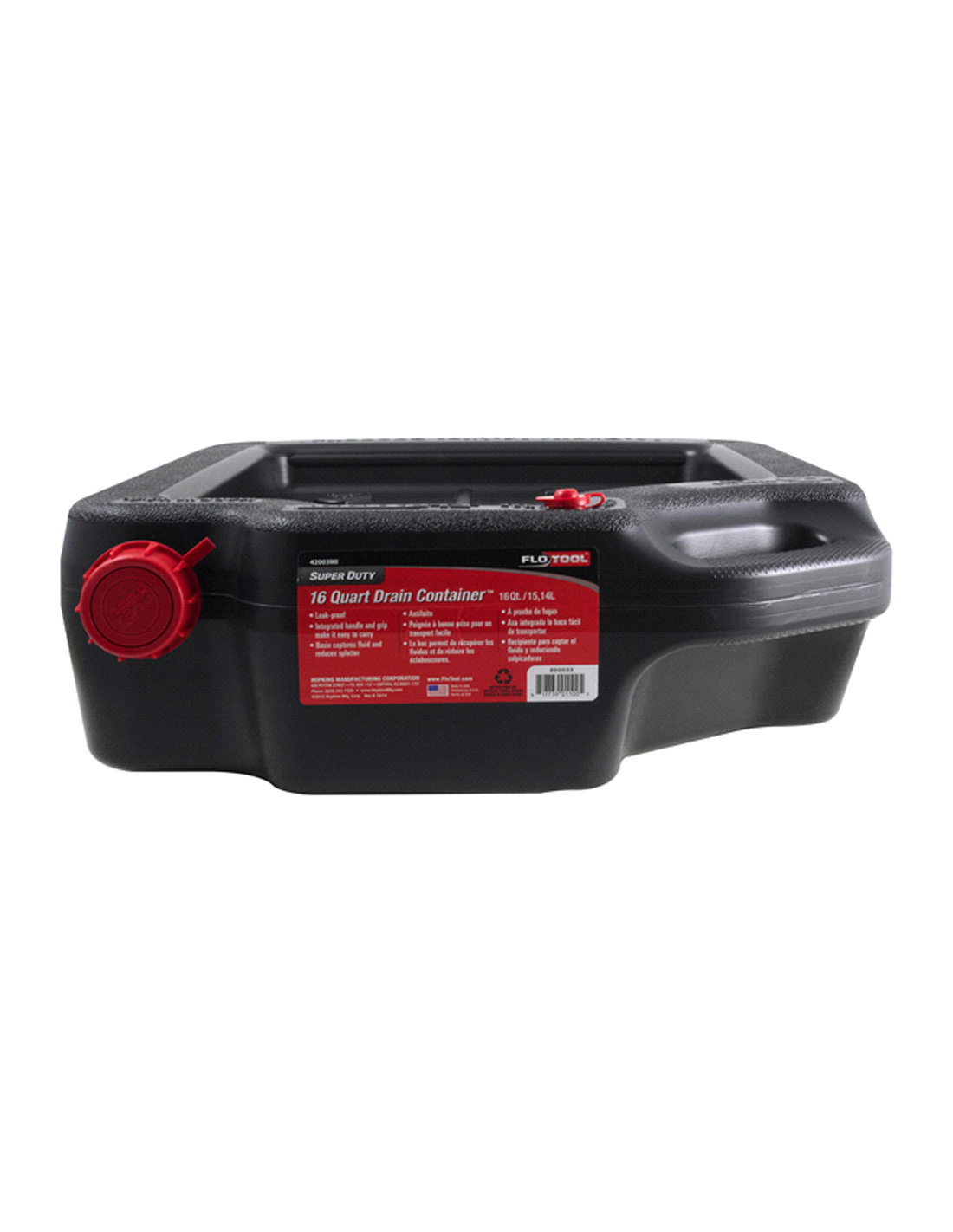 El contenedor de drenaje de aceite Super Duty de 16 cuartos FloTool® fue desarrollado para altas capacidades de aceite. El diseño a prueba de fugas crea uno de los mejores desagües de bricolaje del mercado. Las características robustas eliminan el típico desorden del cambio de aceite. Fabricado en EE. UU. Capacidad: 4 galones, Dimensiones largo x ancho x alto (pulg.): 20,06 x 17,19 x 6,25 pulgadas, máx. Altura del recipiente de drenaje: 6,25 pulgadas, Tipo de producto: Contenedor de drenaje