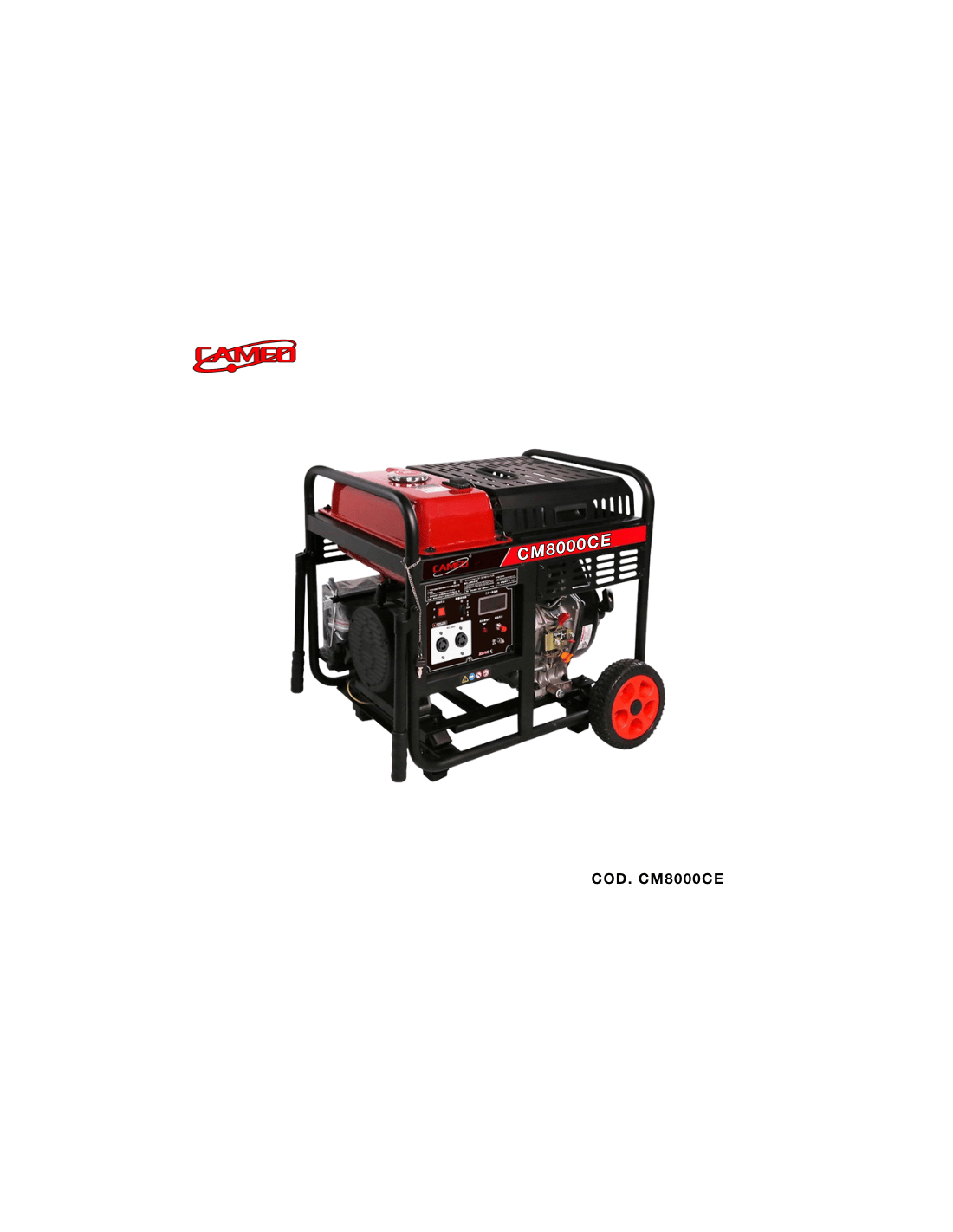 El generador Cameo CM8000CE ofrece 5000W de potencia con motor a diésel de alto rendimiento. Diseñado para brindar energía continua y estable, es perfecto para respaldar equipos eléctricos en emergencias o trabajos de construcción. Cuenta con sistema de arranque eléctrico, estructura resistente y tecnología de bajo consumo, garantizando durabilidad y eficiencia.