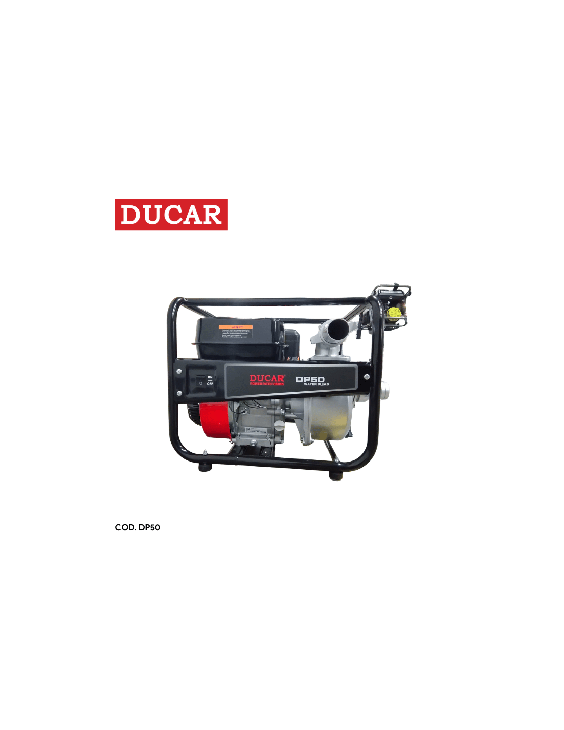 La DUCAR DP50 es una motobomba con diámetro de succión y descarga de 2”, impulsada por un motor a gasolina de 212cc. Ideal para riego agrícola, drenaje de pozos, construcción y aplicaciones generales de bombeo. Su diseño robusto y portátil garantiza alto caudal, durabilidad y facilidad de uso, siendo una solución confiable para trabajos intensivos.