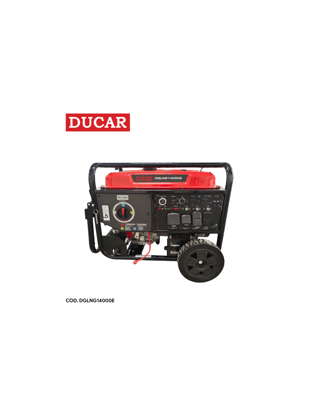 El DGLNG14000E entrega 10,000W de potencia y la ventaja del sistema Tri-Fuel, permitiendo operar con gasolina, gas propano o gas natural. Ideal para emergencias, industrias o negocios que requieren energía confiable con máxima flexibilidad.