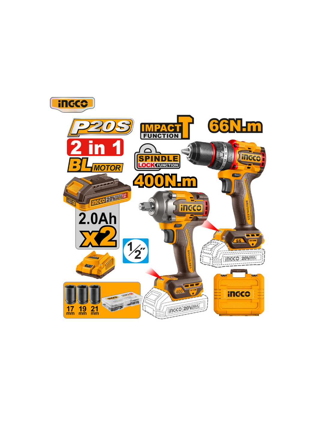 Potencia tus proyectos con el combo de 2 herramientas inalámbricas de INGCO. El taladro percutor es ideal para perforar en madera, metal y concreto, mientras que el atornillador de impacto ofrece un torque masivo para apretar y aflojar tornillos y tuercas sin esfuerzo. Ambas herramientas comparten la batería de 20V, brindándote la libertad de trabajar sin cables.