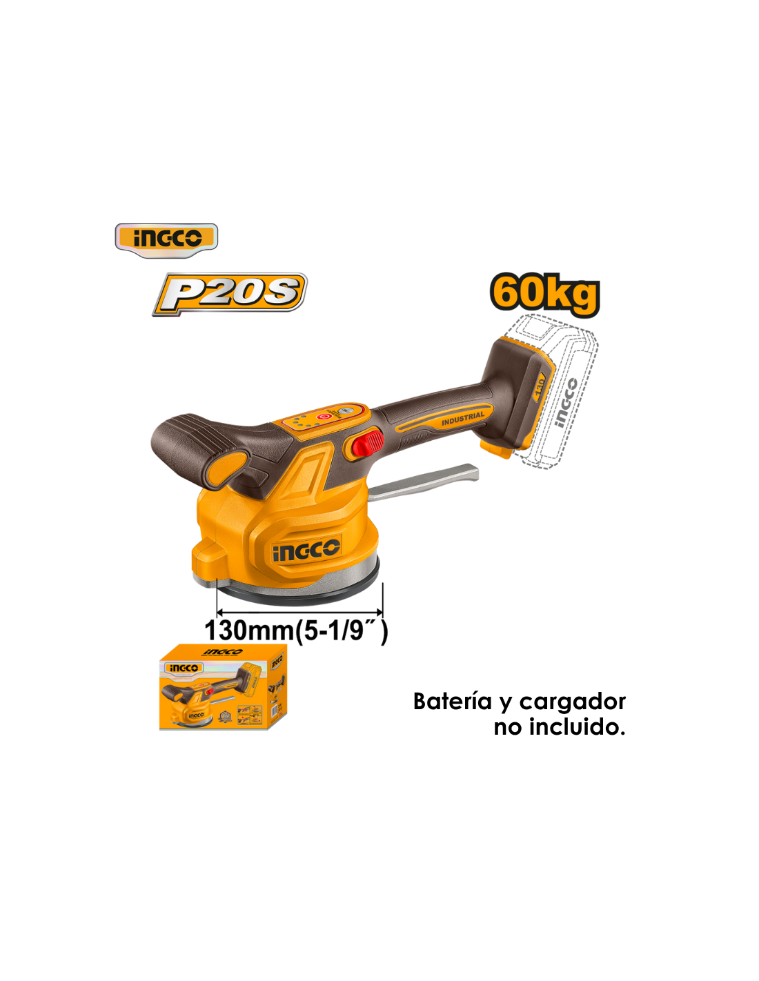Logra instalaciones de pisos y paredes impecables con el Vibrador de Cerámica Inalámbrico de INGCO. Su potente vibración ayuda a asentar las baldosas de manera uniforme, asegurando una cobertura completa del adhesivo y previniendo futuras roturas. Su diseño ergonómico y sin cables facilita el trabajo en grandes áreas.