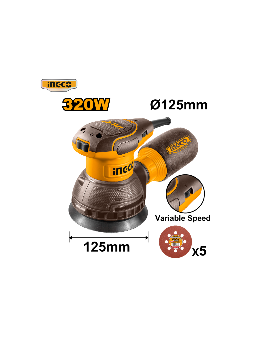 LIJADORA ROTO ORBITAL INDUSTRIAL 5" 320W INGCO URS3208
