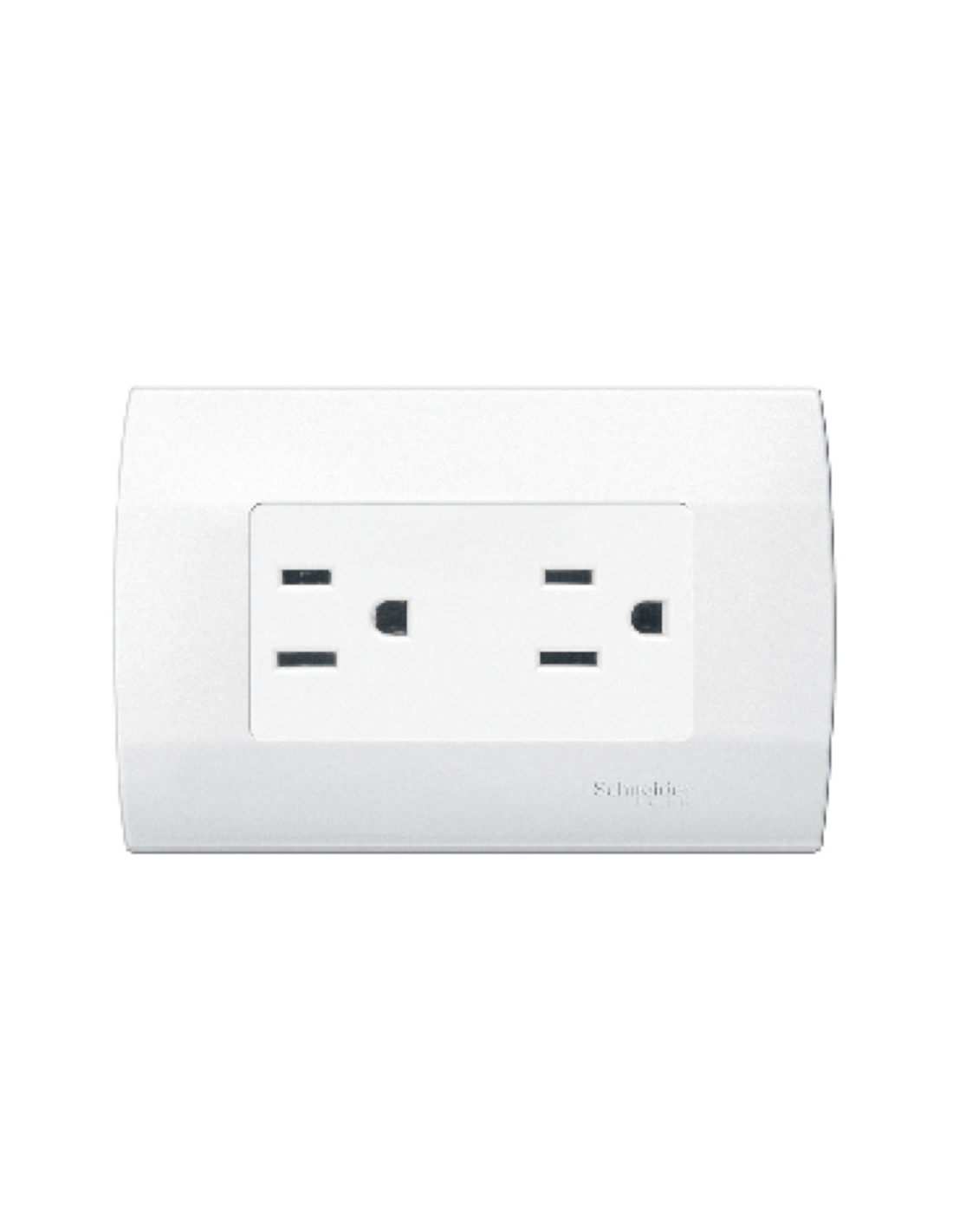 Contacto dúplex con placa Marisio de 15A, 127VCA, 1 X 3 módulos, 2P+T, color blanco
