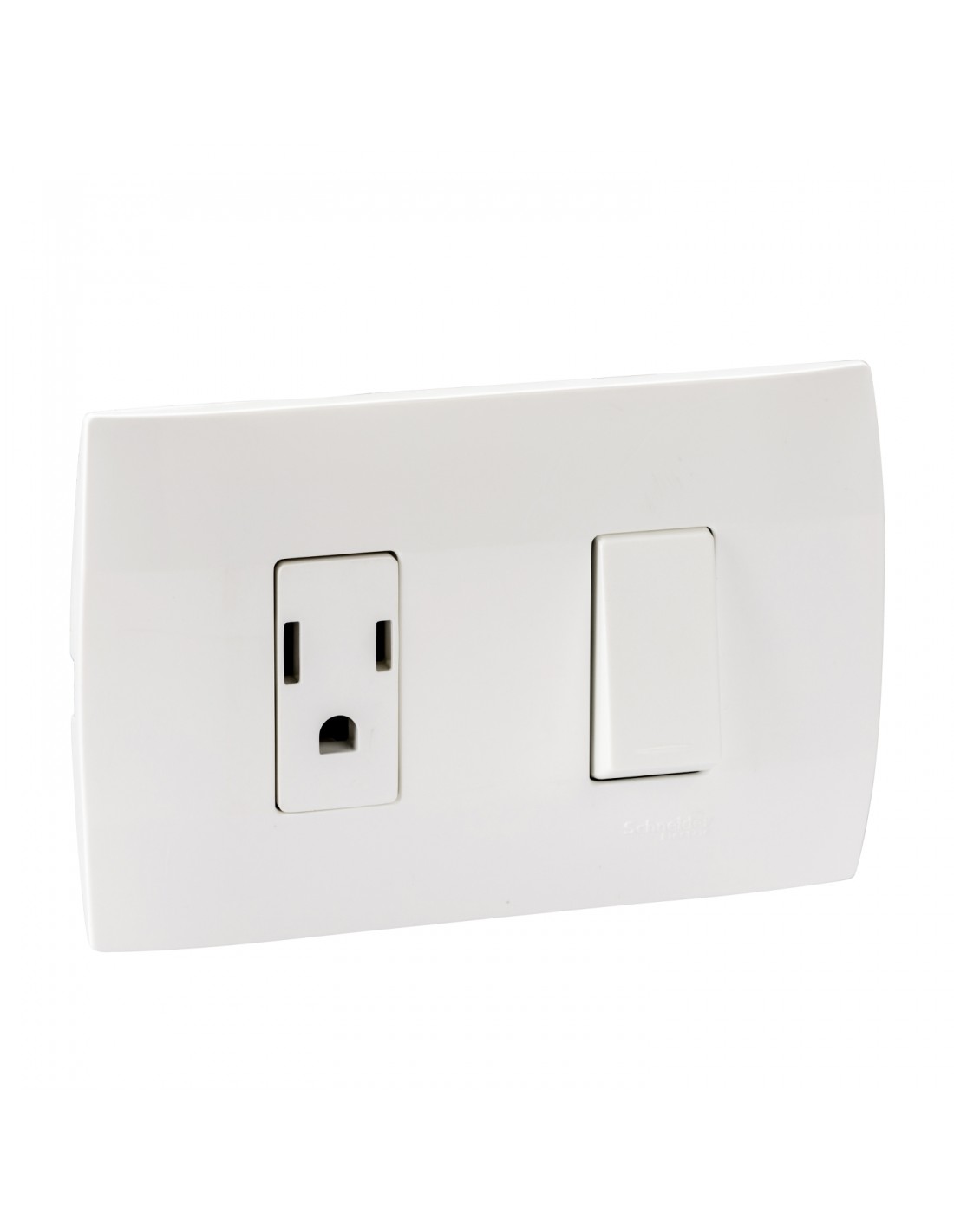 Placa con interruptor sencillo y contacto 2P+T Marisio de 2 módulos, 15/16A, 250V, blanco