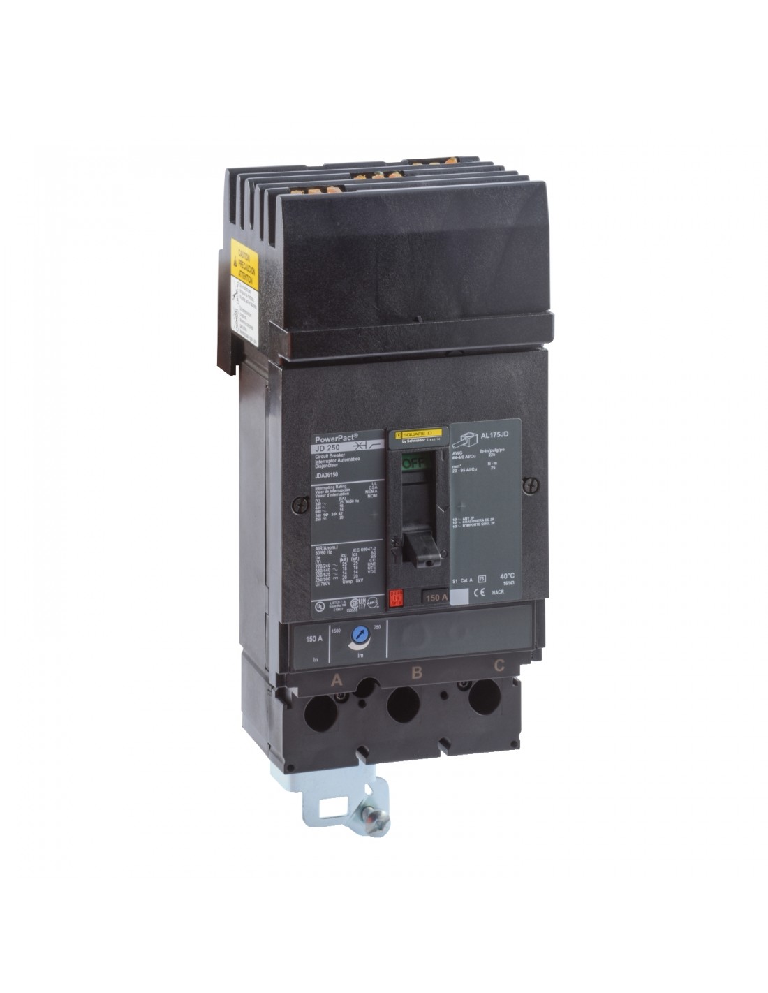 poder de corte | 25 kA en 240 V CA 50/60 Hz acorde a UL 489 18 kA en 480 V CA 50/60 Hz 14 kA en 600 V CA 50/60 Hz 20 kA en 250 V CC |