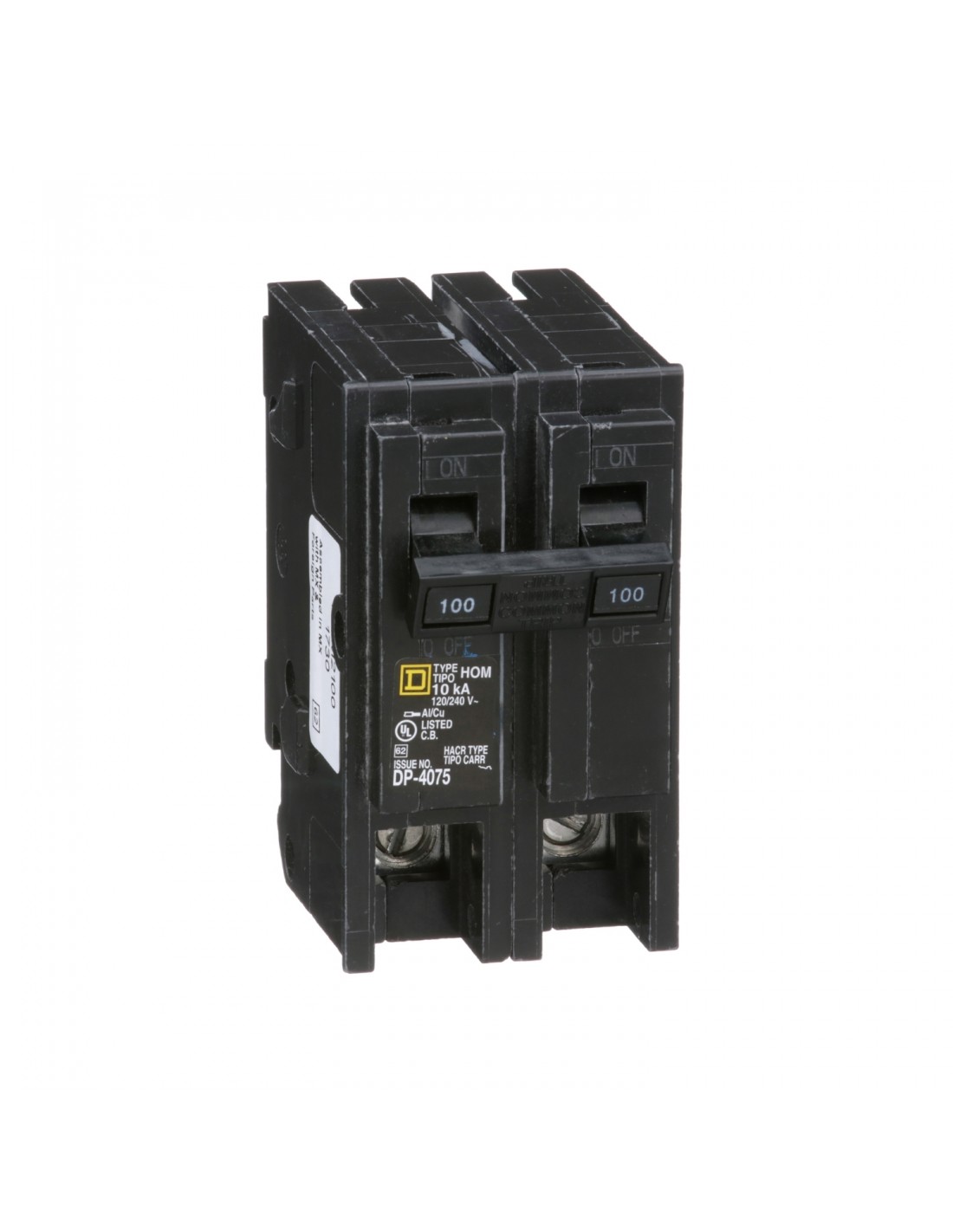 Interruptor Homeline, 100 A, 2 polos, 120/240 VCA, 10 kA AIRE, tipo estándar, enchufable, UL, HOM2100