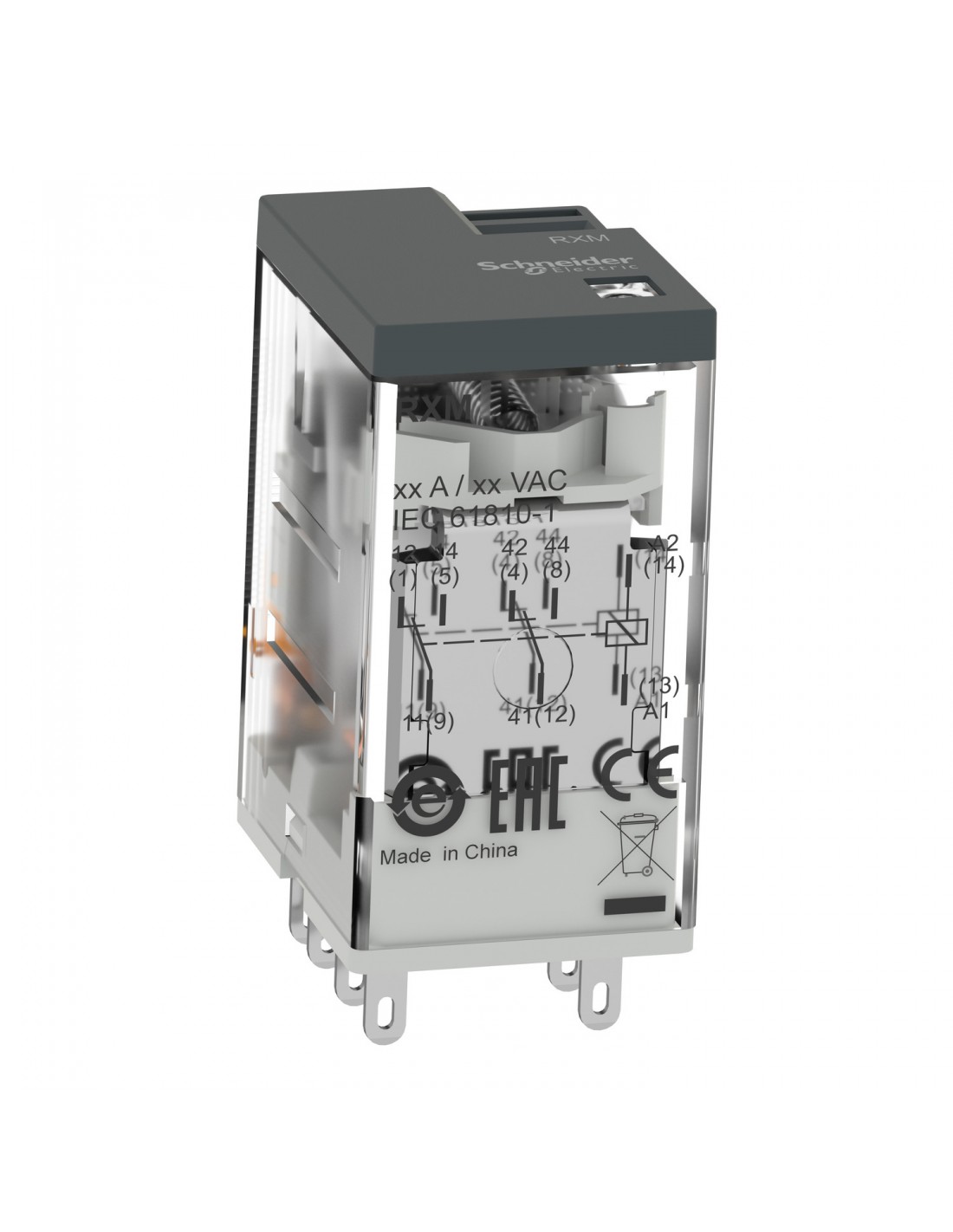 Los relés miniatura RXM son parte de los relés electromecánicos Harmony. Este es un relé enchufable que debe montarse en una toma RXZE. Es un relé de 2 C/O con clasificación de corriente de 5A, tensión del circuito de control de 24 V CC. También ofrece un indicador mecánico donde un indicador naranja indica el estado de contacto del relé. El producto es IP40 y tiene una cubierta transparente que permite al operador inspeccionar visualmente el estado de los contactos. Capacidad de trabajo para sistemas automatizados de lógica cableada para complementar las funciones de los controladores lógicos programables industriales (PLC). Su diseño es apto para máquinas industriales, embalaje, textil, HVAC, paneles de control de automatización, tableros de baja/media tensión, controles de motor, interfaces PLC, fuentes de alimentación, edificios o equipo médico, controles de iluminación.127.20