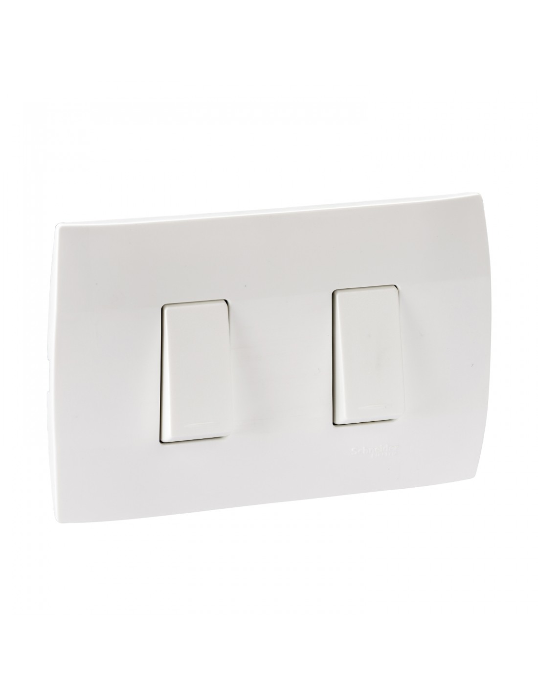 Interruptor escalera y sencillo con placa Marisio de 16A, 250V, 2 módulos, blanco