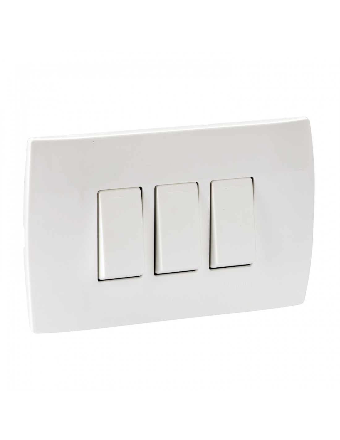 Placa con 3 interruptores sencillos Marisio de 16A, 250V, 3 módulos, 1 vía, blanco
