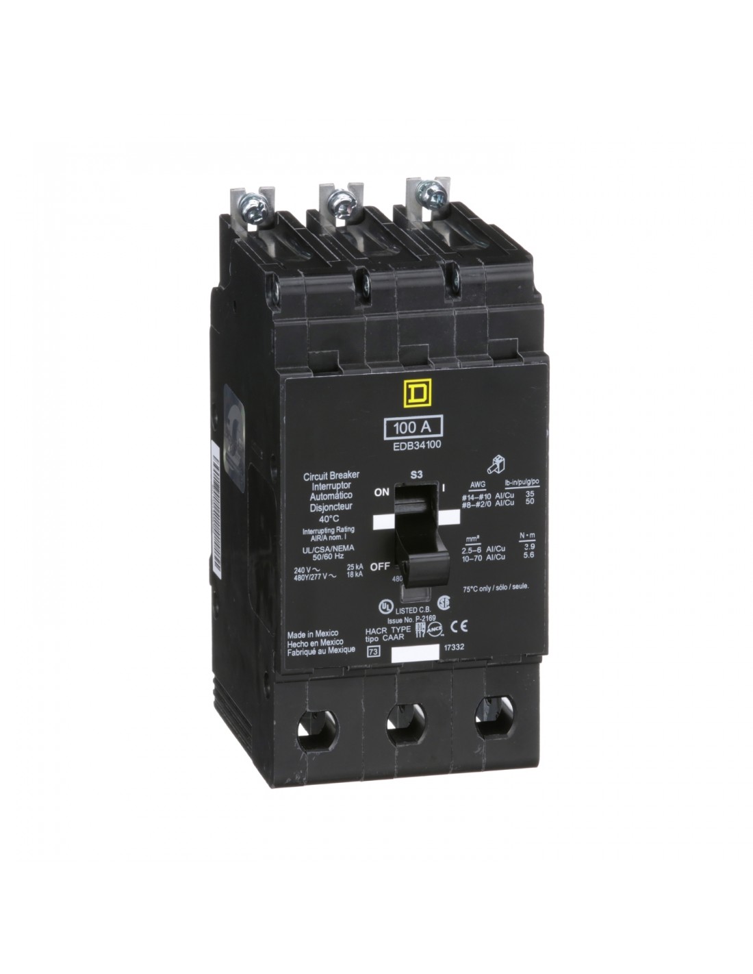 SQUARE-D BREAKER ATORNILLABLE EDB 3 POLOS 100A