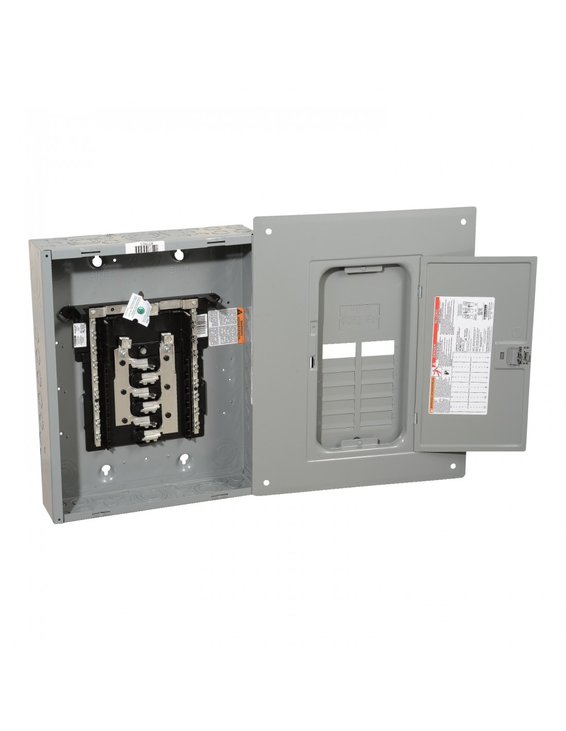 Centro de carga, Homeline, monofásico, 12 espacios, 24 circuitos, terminales principales convertibles de 125 A, PoN, NEMA1, cubierta combinada