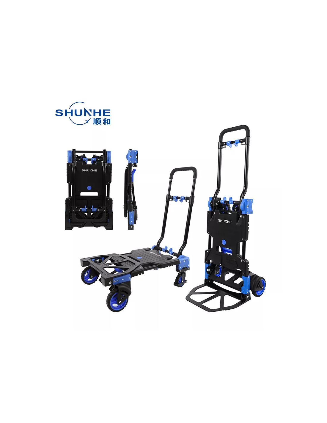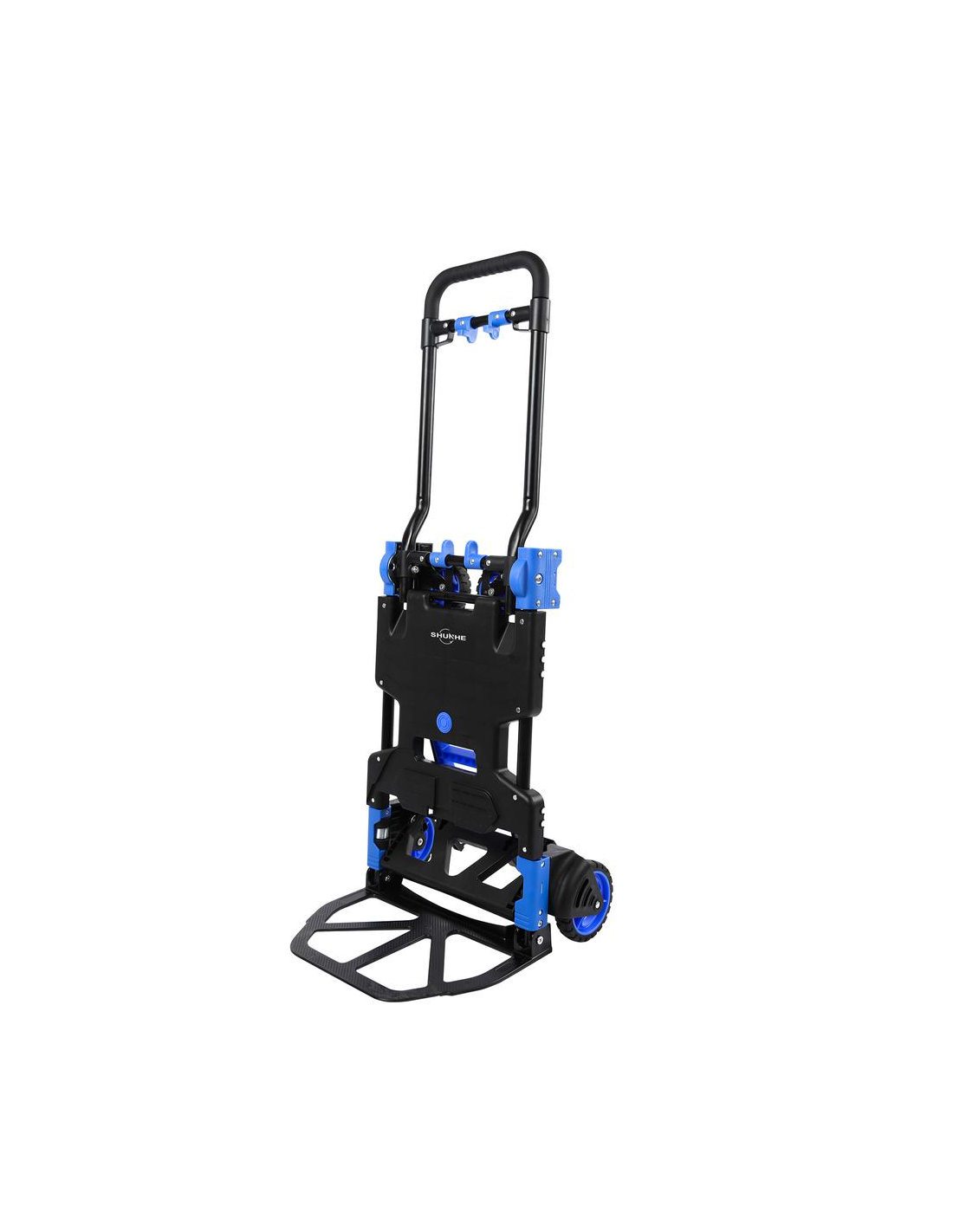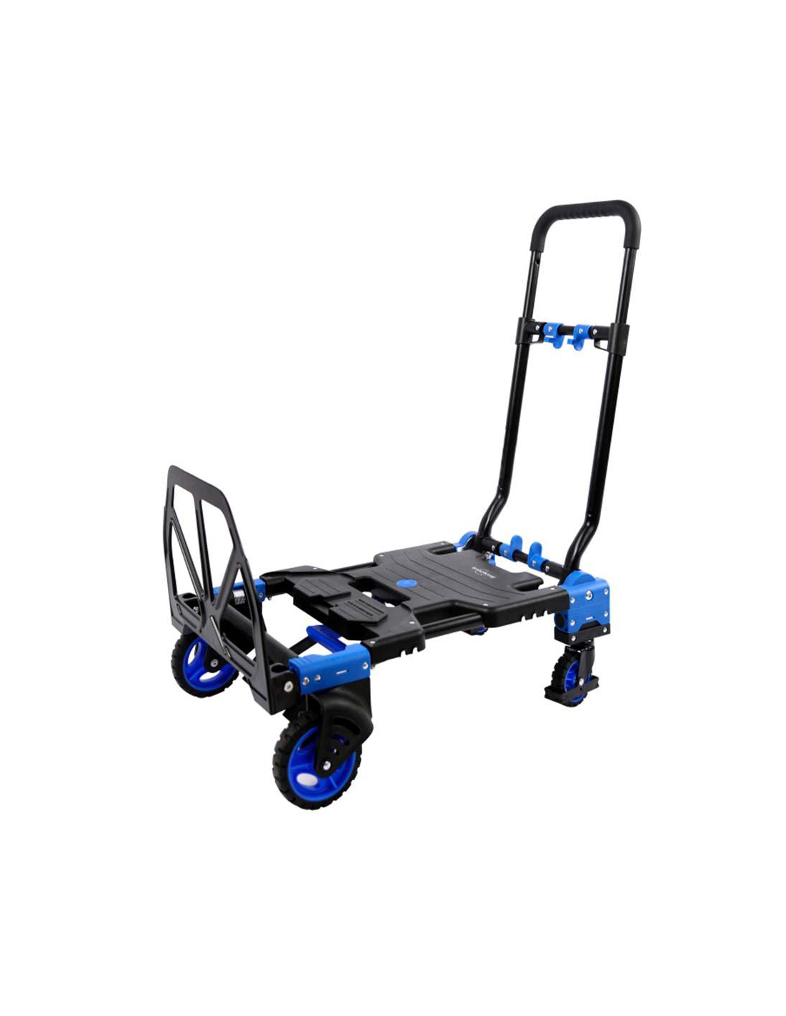 El FW-90TP está fabricado en aluminio resistente y duradero. Puede usarse como carretilla de mano de dos ruedas o como carretilla plegable de cuatro ruedas. La versión de dos ruedas soporta 68 kg y la de cuatro ruedas, 136 kg. Presione las palancas para desbloquear el asa y elevarlo a la altura deseada. Levante la placa base si desea mayor control de la carga. Empuje el asa ligeramente hacia adelante y hacia atrás al presionar las palancas para desbloquearlo y levántela para usarla como carretilla de dos ruedas. El diseño de carretilla y carretilla de plataforma en un solo producto le permite usarla prácticamente en cualquier lugar. Será su mano derecha.