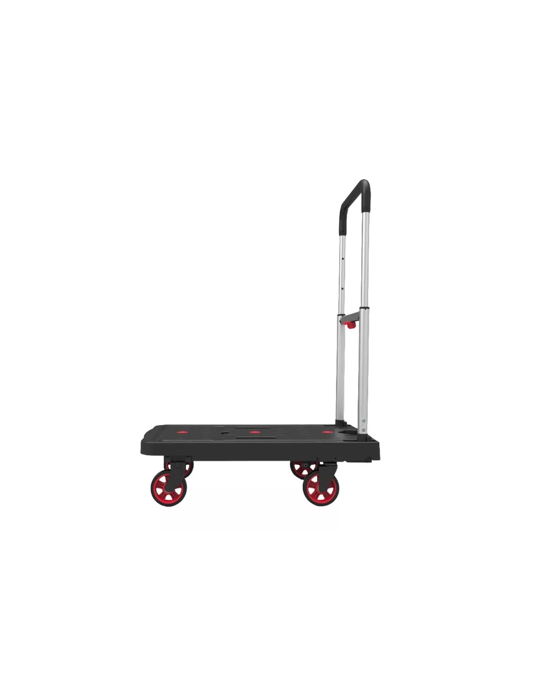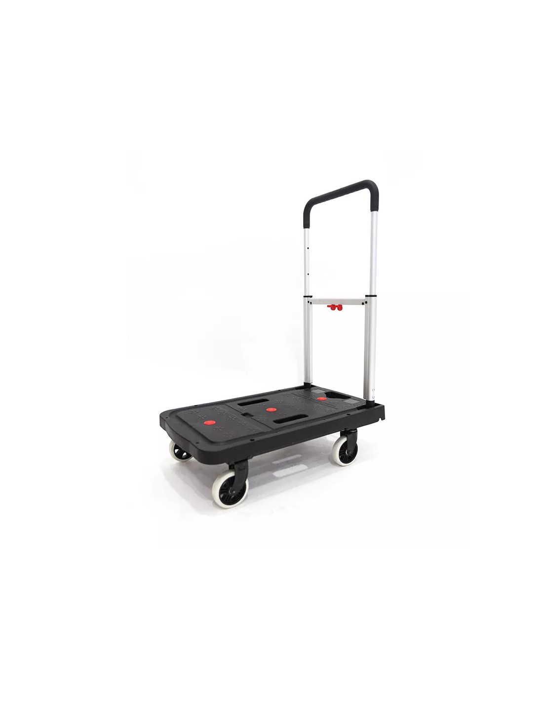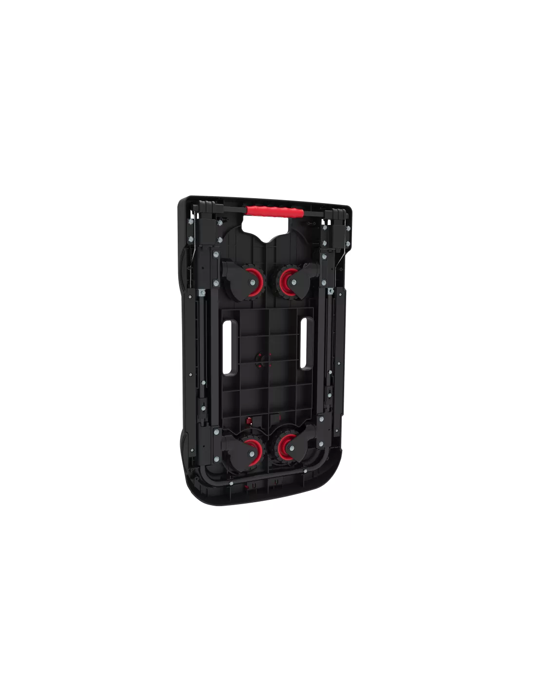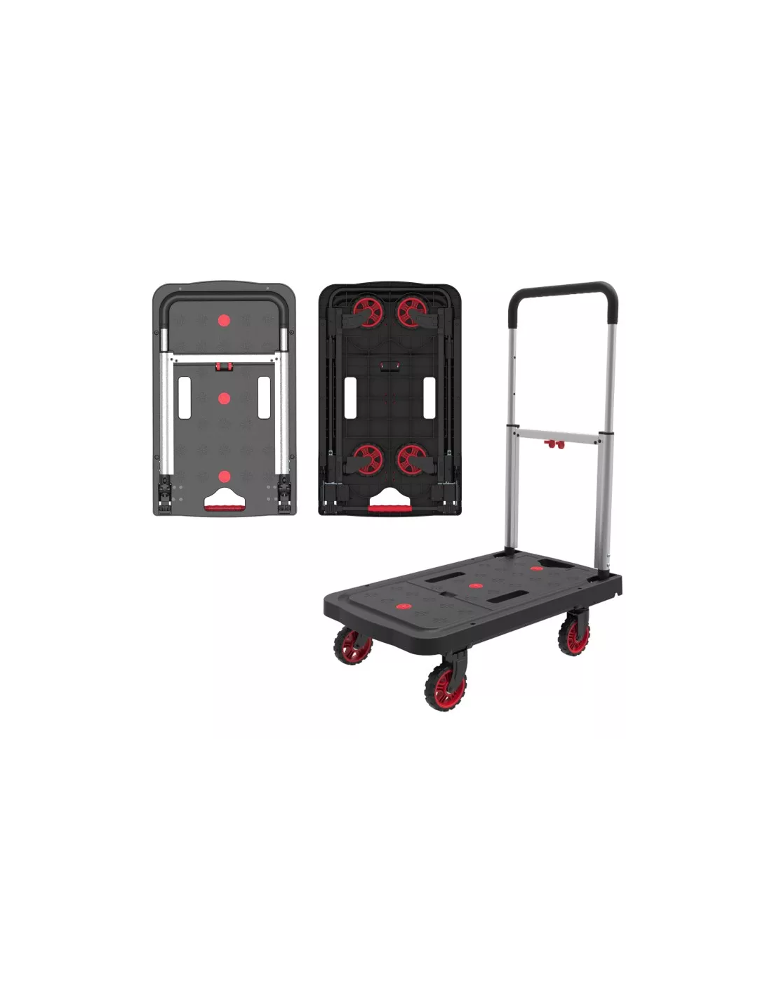 Las cuatro ruedas son silenciosas y plegables, lo que proporciona un espacio de almacenamiento compacto en casi cualquier lugar. La altura del mango se puede ajustar en 3 niveles para que todos puedan manejarlo fácilmente. Incluye ranuras en la plataforma para apilar dos o tres cestas compatibles de forma fácil y estable.