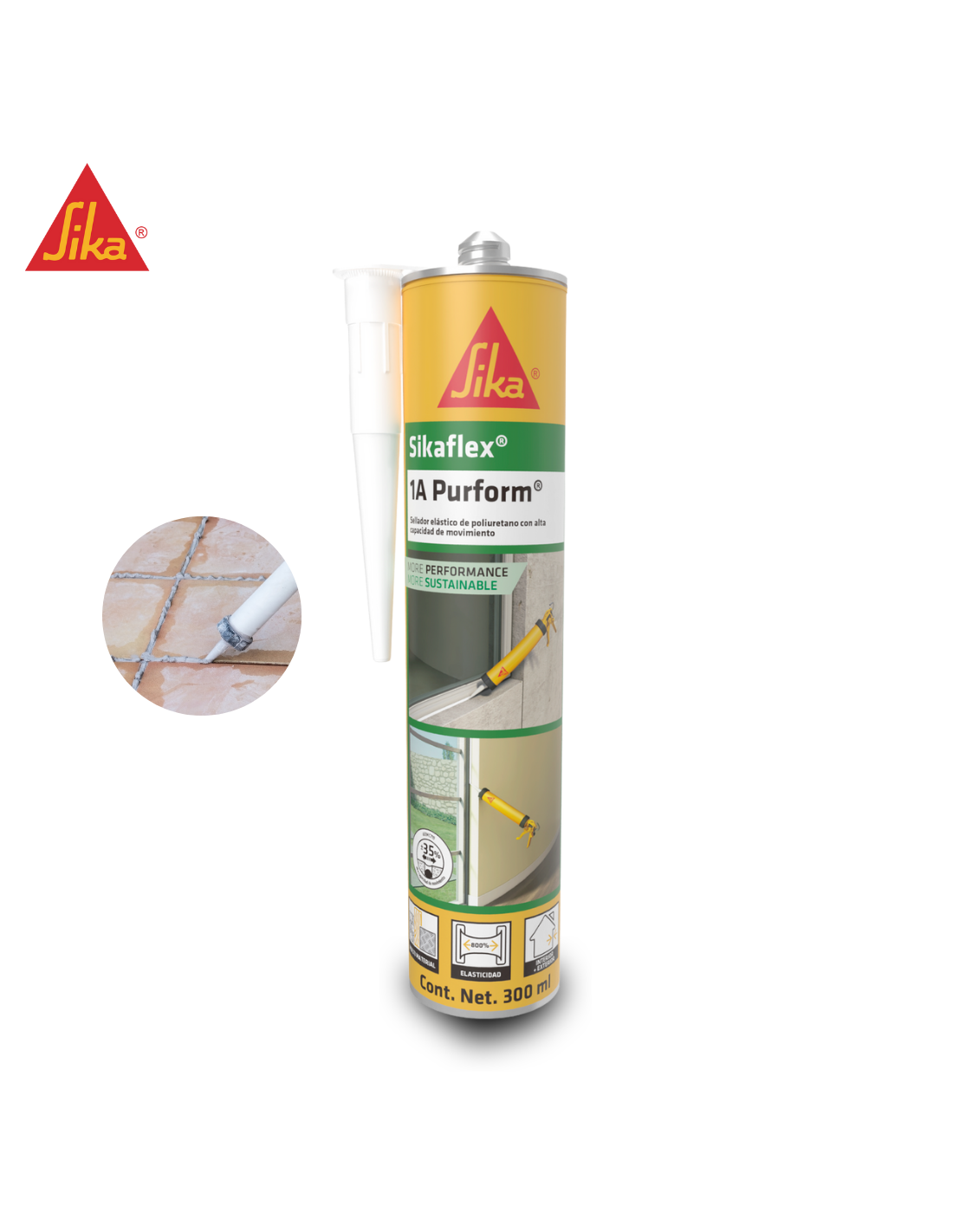 Sellador de juntas elástico de poliuretano de alta calidad (con la tecnología PURFORM®) y con alta capacidad de movimiento, que cura con la humedad del ambiente.