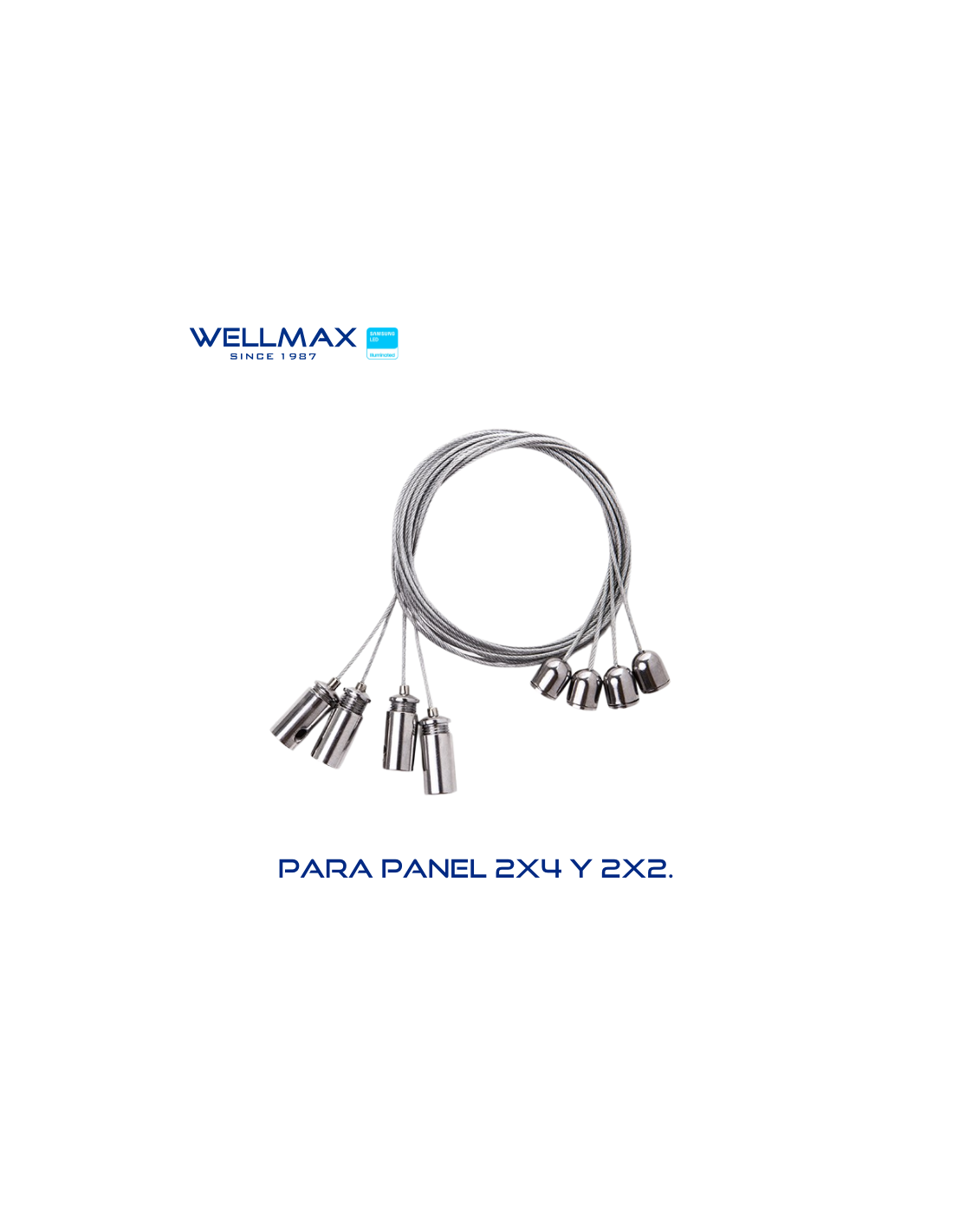 El WELLMAX KIT DE SUSPENSIÓN CABLE PARA COLGAR PANELES 4 PIEZAS es un juego de accesorios diseñado específicamente para montar paneles LED de forma suspendida del techo, permitiendo un ajuste de altura y un acabado estético y moderno.